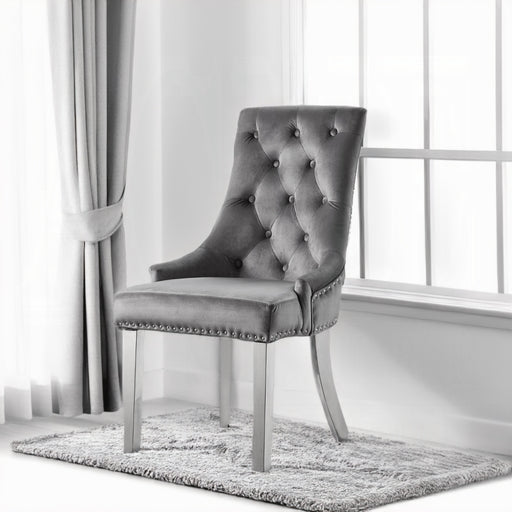 AcmeProduct Pack: 2PC/1CTN Finish: Gray Fabric & Mirrored Silver Finish Material: Stainless Steel, Upholstered Product Dimensions: 24"L X 2...