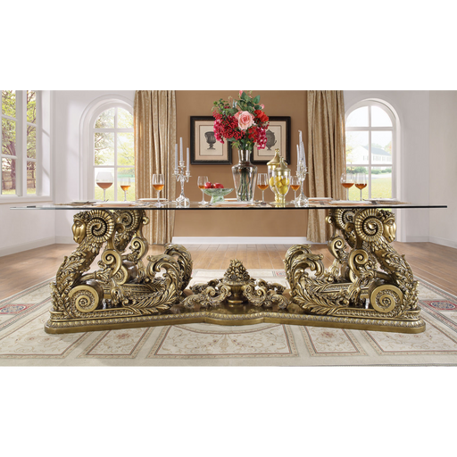 Homey DesignThe HD-903 Dining Table is a true masterpiece that brings luxury and sophistication to any dining room. Featuring a remarkable pedestal base adorne...
