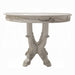 The Dresden counter-height round dining table is a striking centerpiece, showcasing a bone-white finish that radiates elegance and timeless charm. Its classic wooden tabletop is accented by a beautifully detailed apron, creating a refined yet inviting aesthetic. The table’s foundation features claw feet that form a dramatic single pedestal, intricately carved to resemble the powerful claws of a mythical creature, adding a touch of grandeur to any dining space. With its compact, round shape, this table is ideal for fostering intimate gatherings and conversation, making it both a functional and stylish choice for smaller dining areas.