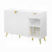 The Gaines dining table boasts sleek, clean lines and offers a subtle hint of glam that elevates any dining space. Its unique base features a textured vertical-lined pedestal accented with a touch of gold, adding an elegant flair. The stunning white high gloss finish not only reflects light beautifully but also creates an illusion of a larger, grander space. Ample in size, this table is perfect for showcasing an impressive spread, ensuring that all your guests can enjoy every moment together in style and sophistication.