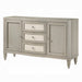 Enhance your dining area with the Elyssa server, a perfect blend of style and functionality. This elegant server is designed with three spacious drawers and two side cabinets, providing ample storage for your extra dishware, glassware, and linens. The drawers feature quilted synthetic leather fronts, adding a sophisticated touch to the overall design. Supported by eight beautifully crafted fluted wooden legs, this piece stands out in any dining space. Finished in a chic champagne color, the Elyssa server not only offers practical storage solutions but also elevates the aesthetic of your home.