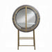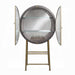 Elevate your mini bar with the eye-catching Nilsa wine cabinet, a showpiece that brings a touch of adventure and glamour to any space. Inspired by the industrial design of the 1920s, this spherical cabinet resembles a giant mirrored porthole, with an aluminum body coated in a brass finish and glass doors framed in metal with exposed rivets for added character. Inside, the mirrored interior and tempered glass shelves create a gleaming display for your finest spirits, while a wire wine rack keeps bottles neatly stored. Supported on a sturdy brass-colored pipework base, the Nilsa wine cabinet is a true conversation starter, ideal for a statement-making addition to a living room, study, or private bar setup.