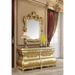 The Seville Dining Room Collection captures the essence of sophisticated luxury, designed to make an unforgettable impression from the first glance. Richly carved ornaments and lustrous gold finishes on the wooden frame create a regal, opulent ambiance. The dining table’s double pedestal base adds a classic silhouette to its rectangular form, while the chairs feature gracefully curved lines and plush, padded seats for maximum comfort. With matching curio and server, the collection combines elegance and organization seamlessly. Experience refined comfort and timeless style with the Seville Dining Room Collection.