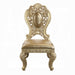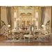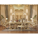 The Seville Dining Room Collection defines sophistication and luxury, captivating anyone who enters the room. Exquisite carvings and a lustrous gold finish adorn the wooden frame, setting an opulent tone that enhances your dining experience. The rectangular dining table is elegantly supported by a double pedestal base, offering a classic silhouette that complements the collection's grandeur. Each dining chair features gentle curves and plush, padded seats for added comfort. With matching curio and server pieces, this collection effortlessly combines style and practicality, allowing you to create an organized and visually stunning space. Indulge in the lavish comfort of the Seville Dining Room Collection and elevate your home dining experience to new heights.