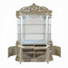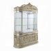 Transform your space into an eye-catching centerpiece of opulence with the Sorina curio cabinet, a stunning blend of grandeur and charm. Finished in luxurious gold and silver, this cabinet sparkles with a hint of glamour, showcasing a mirrored back panel and an elegant top crown. Behind the two wooden-framed glass doors, you'll find two glass shelves that provide generous space to display and organize all your treasured items beautifully.