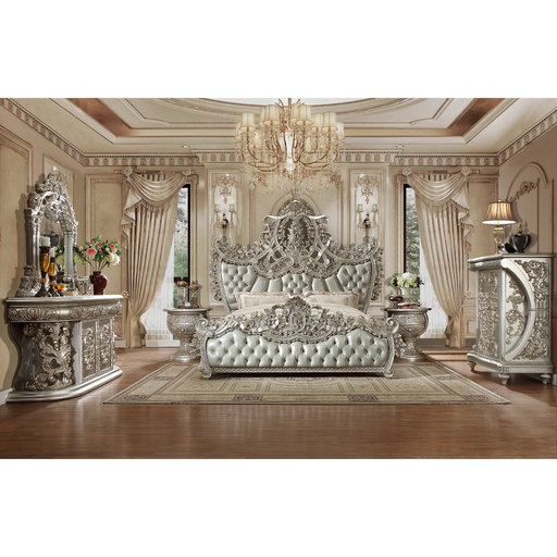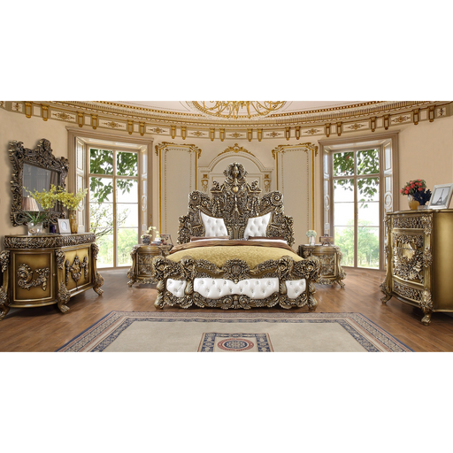 Homey Design4 Piece Set Includes: Bed, 1 Nightstand, Dresser & Mirror The HD-8022 Luxury Ornate Old World Leaf Bed is the epitome of luxury and sophisticat...