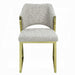 Ensure your guests feel comfortable and cozy with the Galdesa dining chairs as part of your dining room ensemble. These beautiful chairs stand out on their own, featuring luxurious teddy sherpa upholstery that is soft and inviting, complemented by generously padded back and seat cushions. The mirrored gold metal frame enhances their modern appeal, making these chairs a stylish addition to any dining space.