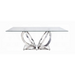 Every unforgettable gathering deserves a stunning dining table that enhances your dinnerware and home decor. The Finley Dining Table, a true modern masterpiece, instantly becomes the centerpiece of your dining space. Its clear glass top allows light to pass through, illuminating the sleek metal base, which is finished in mirrored silver for a touch of glamour that reflects beautifully off your tableware. Supported by a stainless steel base with four interwoven circles, it creates a captivating and unique visual display. Impress your guests with the sophisticated charm of the Finley Dining Table at your next dinner party.