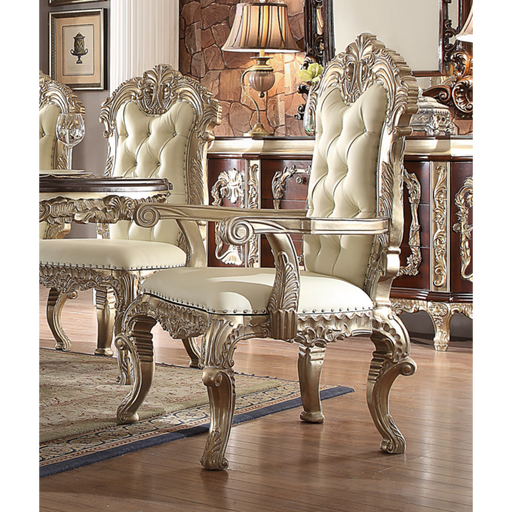 Homey DesignMake a majestic statement at the head of the table with this regal metallic gold armchair. Featuring intricate carvings and upholstered in elegant ...