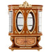 This stunning China Cabinet is the perfect way to store and showcase your finest china. The rich cherry finish is beautifully complemented by metallic gold accents and an intricate inlay design, making this piece truly stand out. Ample shelving provides a perfect display for your grandest china collection, while the felt-lined top drawers are ideal for storing your finest silverware. Add a touch of elegance to your dining space with this exquisite, timeless piece.