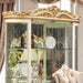This solid wood china cabinet from the HD-903 collection is the epitome of refinement. It features three glass shelves with mirrored back panels, perfect for displaying your most treasured items. The top and apron are adorned with ornate carvings, intricate details, and scrolled accents, all finished in a luxurious gold tone, adding a sense of opulence to your space.