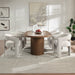 The Gamarya dining collection blends effortless convenience with refined style, creating a welcoming space for guests. With a contemporary flair, this collection features an oval tabletop and vertical reeding on the pedestal base, combining classical elements with modern appeal. The classic oak finish seamlessly complements any decor, while the gracefully curved dining chairs add a playful touch, making them both visually striking and comfortable. Choose between two distinct chair styles, or mix and match for a customized look; both are upholstered in crisp white fabric, enhancing the collection’s fresh, inviting feel.