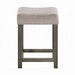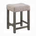 The Wandella four-piece counter-height table set includes a versatile table and three comfortable stools, perfect for both dining and entertaining. The table offers three open storage compartments and is topped with an elegant marble surface, making it equally stylish and functional. Not limited to the dining room, this unique design works beautifully behind a sofa or along a wall, ready to accommodate all your hosting needs. The stools, upholstered in beige fabric with classic nailhead trim, add a touch of elegance. Crafted from a durable wooden frame, a marble top, and selected veneers, the set resists scratches and wear. Finished in a weathered gray, it complements both traditional and modern interiors effortlessly.
